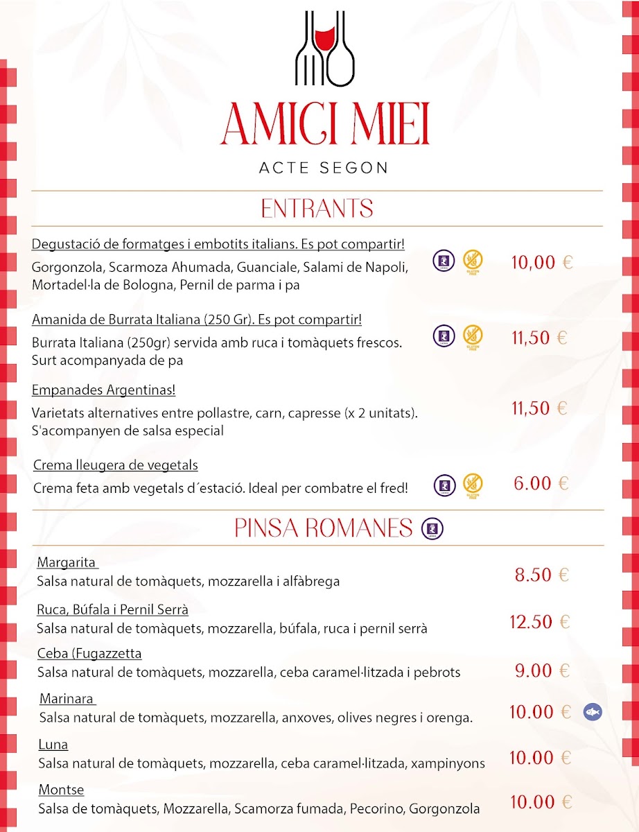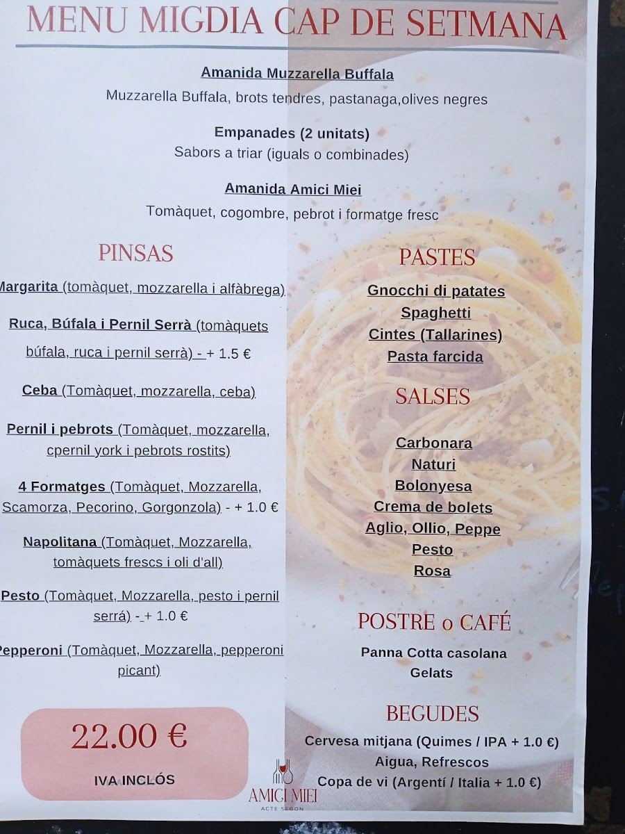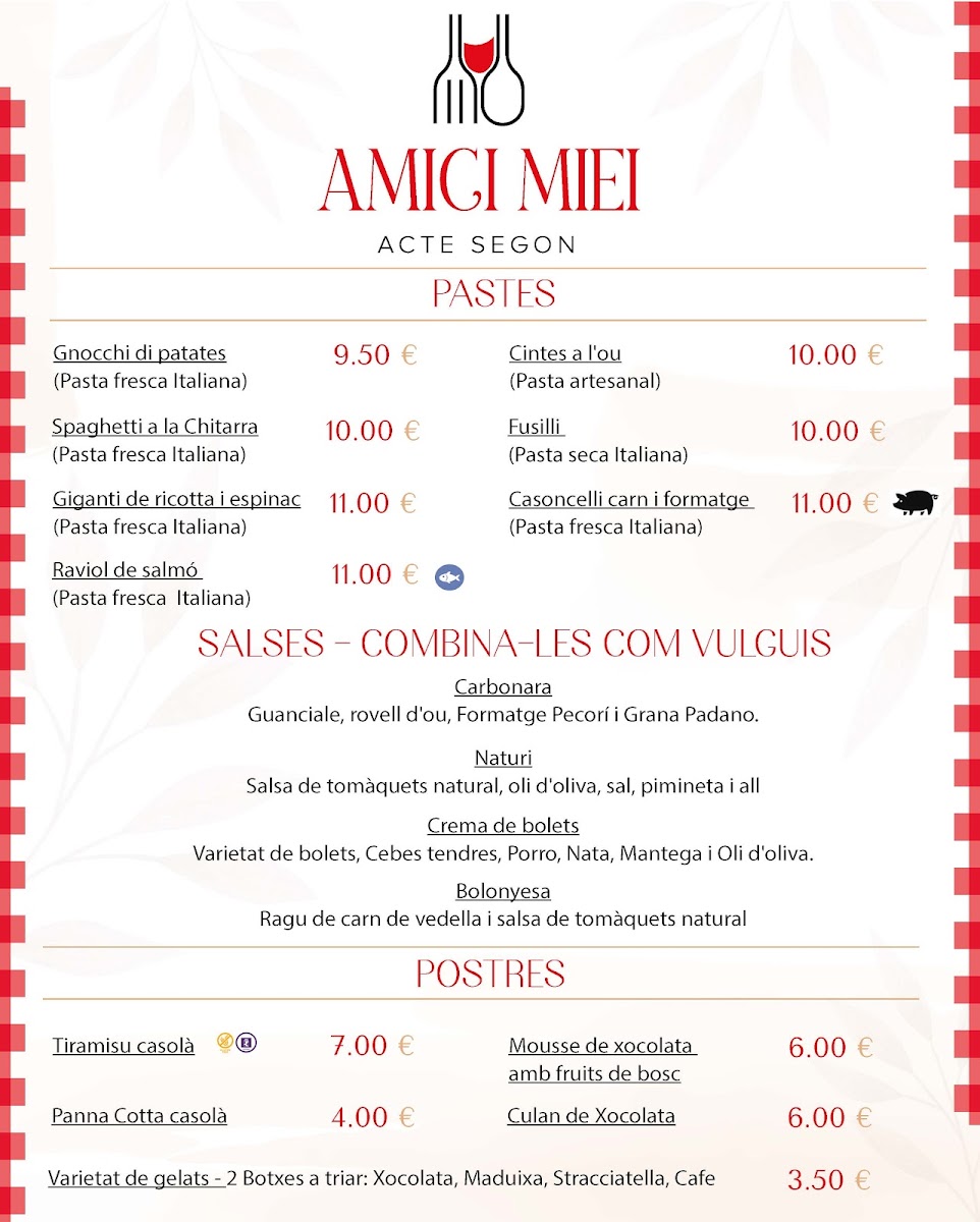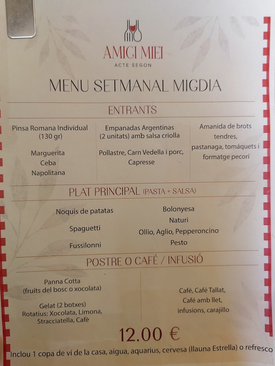 Welcome to Amici miei Acte Segon - Italo Argenti, an intimate Italian taverna nestled in the heart of Vic, Barcelona. This charming eatery, run by a delightful Italian couple, offers a rotating menu inspired by different Italian regions each week, creating a true gastronomic journey.